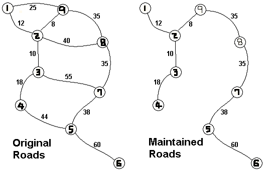 원더랜드는 모든 도시를 서로 연결하면서 최소의 유지비용이 들도록 도로를 선택하고 나머지
