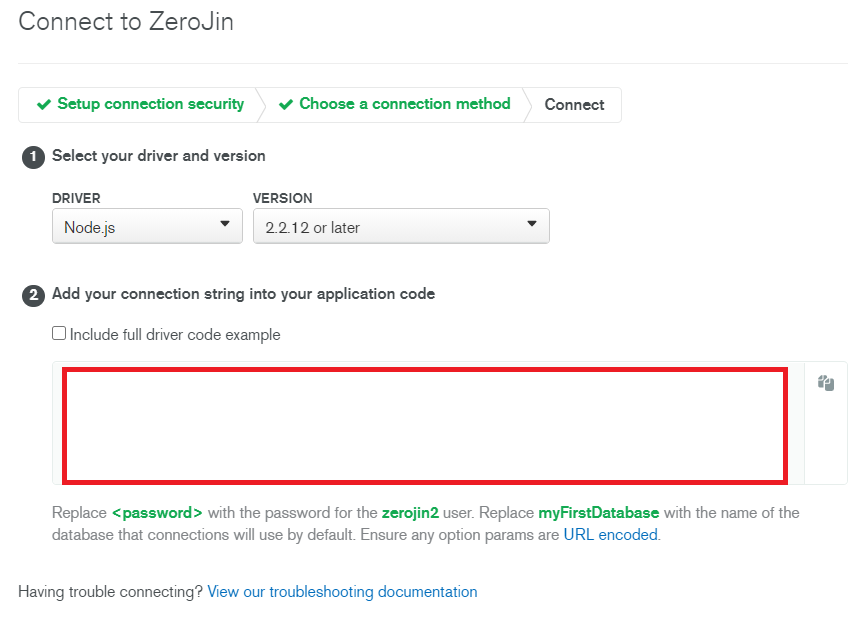 3. Driver : Node.js, Version을 3.6 or later 또는 3.0 or later을 선택했을텐데 2.2.12 or later를 선택합니다.